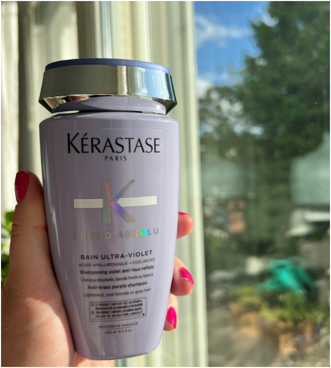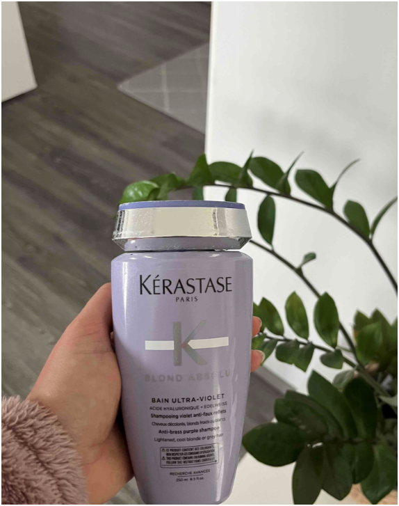- Нейтрализует жёлтые оттенки — фиолетовые пигменты возвращают холодную чистоту блонда