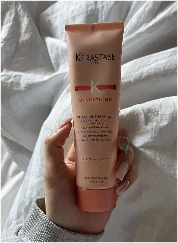 Kérastase Discipline Kératine Thermique — термозащитное молочко для разглаживания и защиты непослушных волос при укладке. Обеспечивает барьер от повреждений до 230°C, увлажняет и смягчает, придаёт блеск и помогает сохранить форму причёски в течение дня.