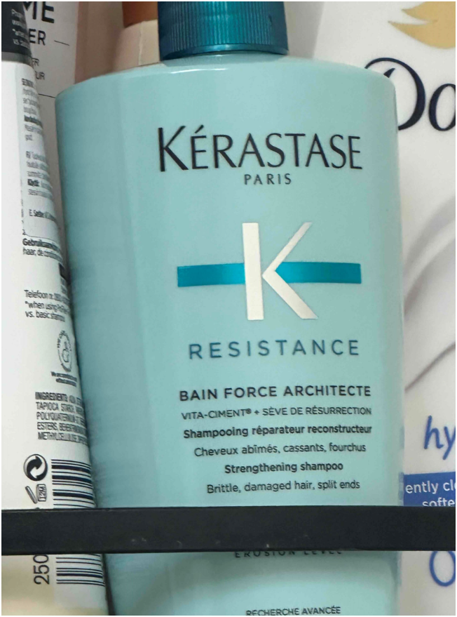 Kérastase Résistance Bain Ciment Force Architecte — укрепляющий шампунь для восстановления структуры и поверхности повреждённых, ослабленных волос (степень повреждения 1–2). Формула с про-кератином и керамидами проникает глубоко в структуру волоса, укрепляя его как изнутри, так и снаружи. Средство придаёт локонам шелковистость, блеск, повышает их устойчивость к повреждениям и предотвращает появление секущихся кончиков.